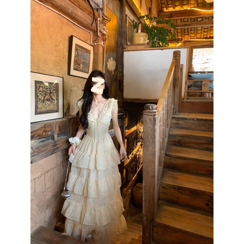 Robe longue de princesse Tea Break Escape pour femme, collection été 2025, style jardin, danse légère, loisirs, resort, amincissante, taille cintrée, col cœur
