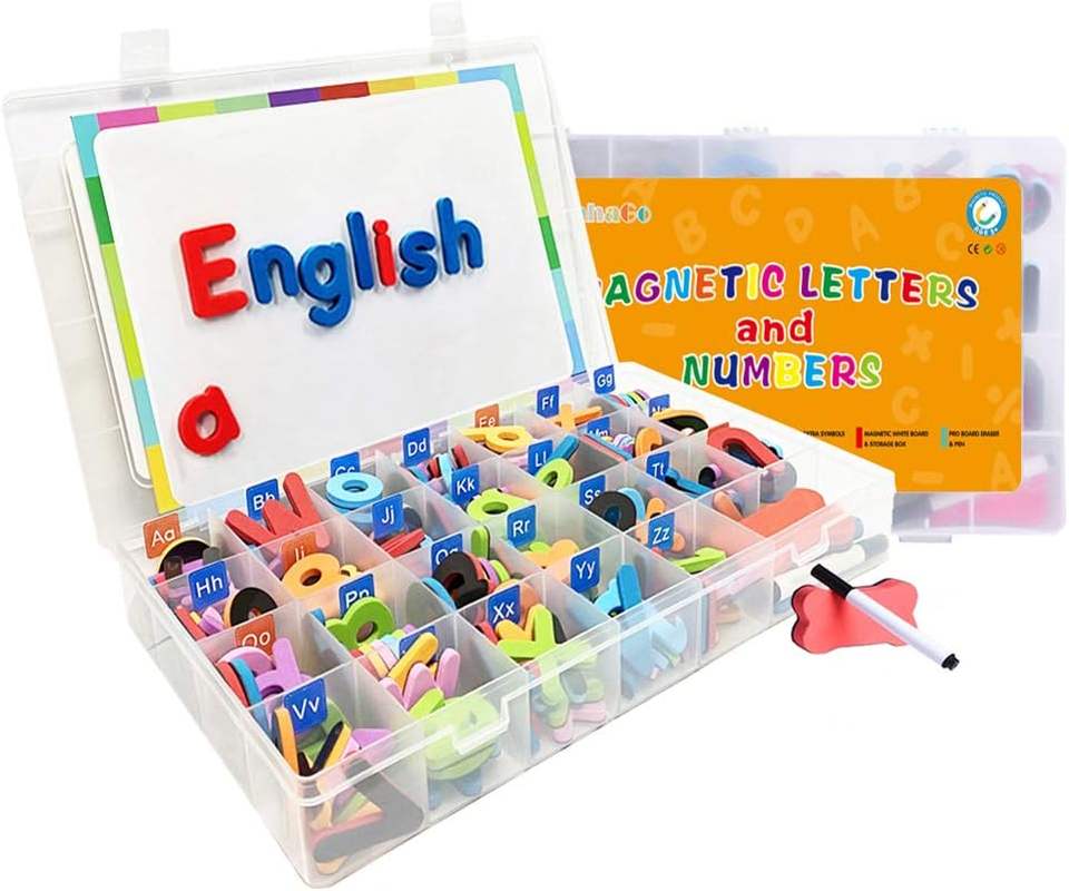 Matériel Pédagogique Lettres Magnétiques ABC Anglais avec Chiffres, Jeu de Plateau Magnétique pour l'Orthographe, Jouets Éducatifs Anglais pour Bébés et Enfants