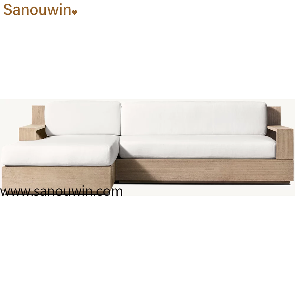 Teak Customizable Sectional Sofa - Solid Teak Wood Outdoor Patio Sofa with Quick-Dry Cushions