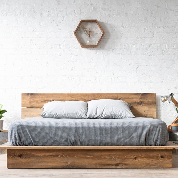 Cadre de lit en bois de Suar en teck acajou couleur naturelle meubles de lit minimalistes modernes durables en bois de couleur naturelle pour hôtel ou villa 030201