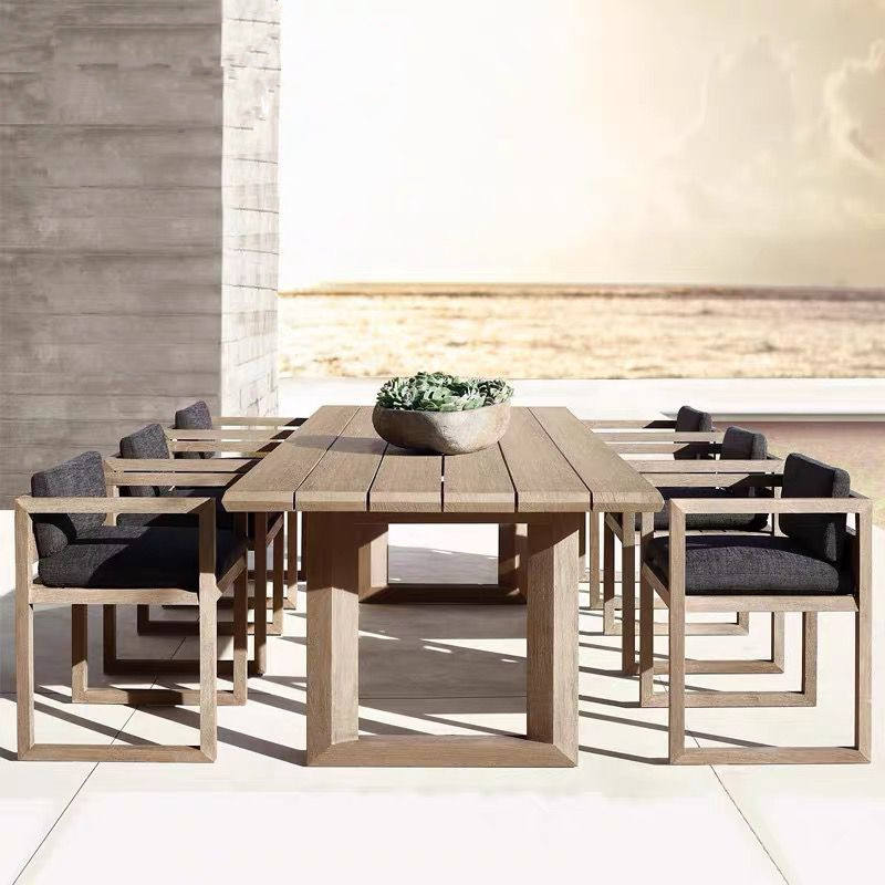 Ensemble de salle à manger d'extérieur en teck 6 places, résistant aux intempéries, pour villa, cour, véranda, hôtel, maison d'hôtes