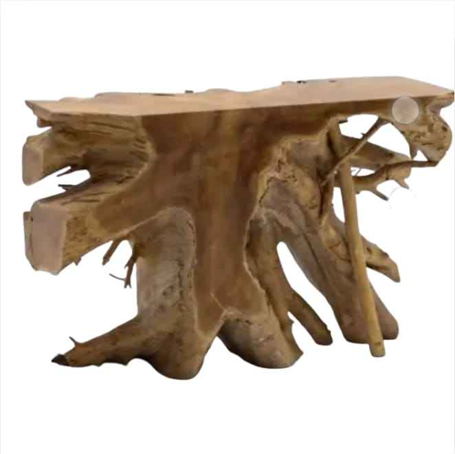 Table console en racine de teck, meubles en racine, meubles d'extérieur