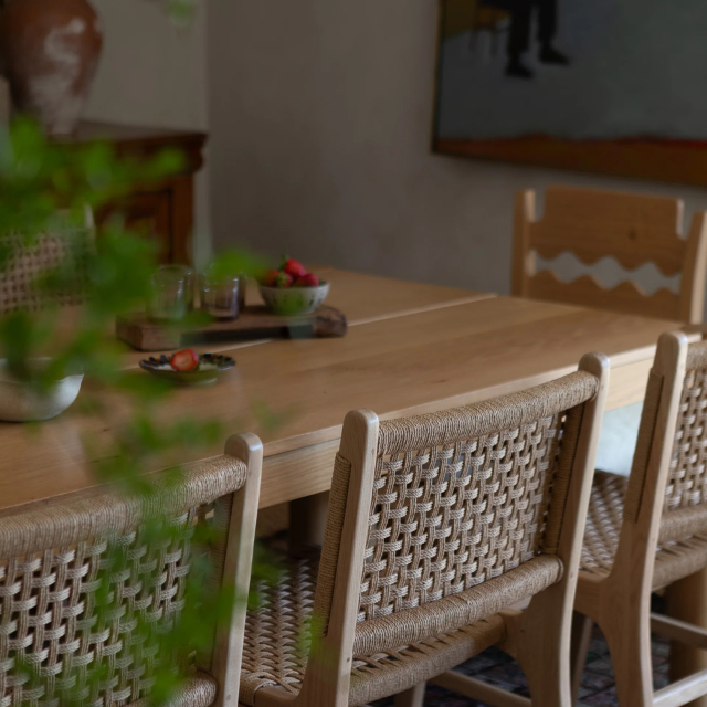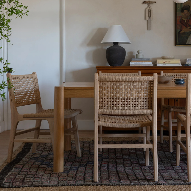 Chaise de salle à manger en corde de teck, siège et dossier en corde tissée à la main, écologique, durable, moderne, en bois de teck massif, meubles de salle à manger pour appartement