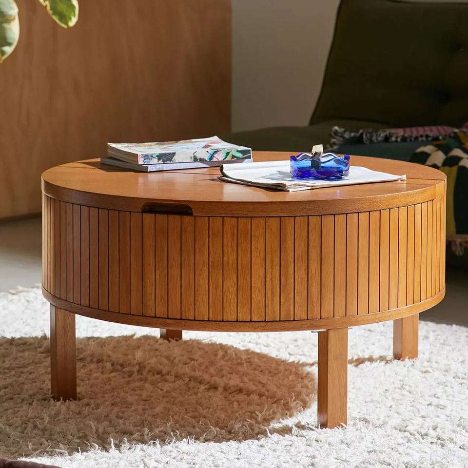 Nom du produit:Table à café en bois de teck forme ronde supérieure peut ouvert des articles de magasin-Miki