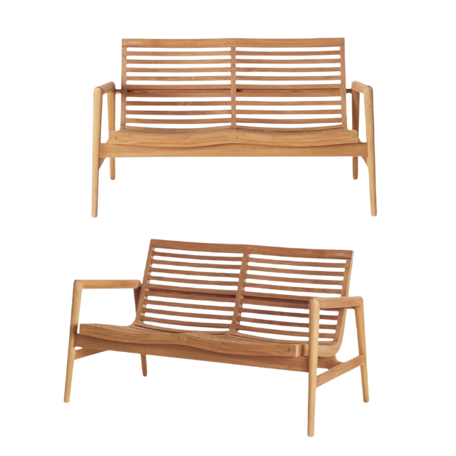 Banc double en teck, ensemble de canapés de jardin 2 places pour jardin extérieur, par Rachel Natalie