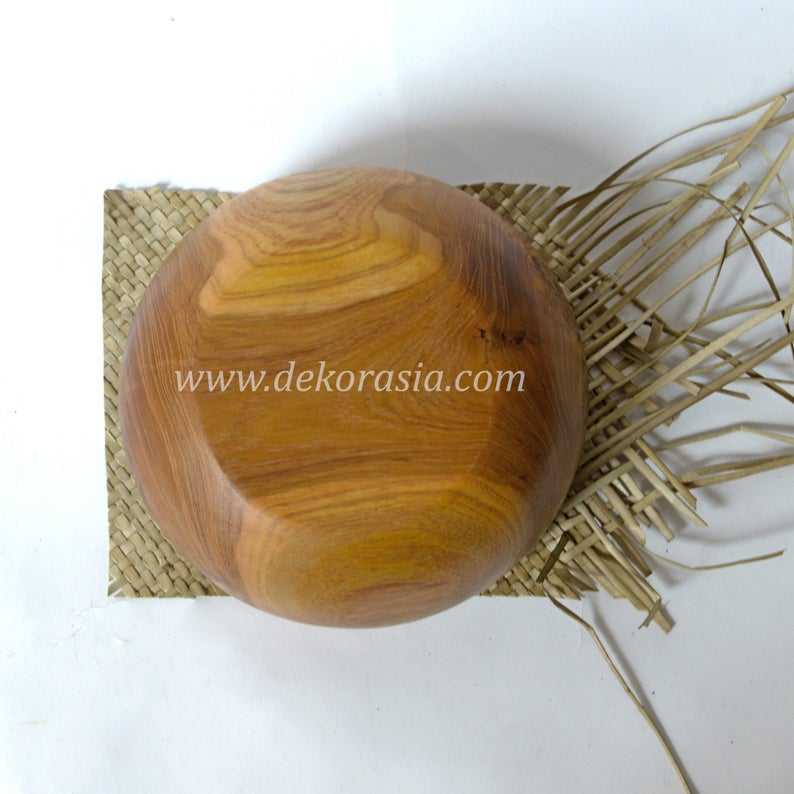 Bol rond en bois de teck de style vintage personnalisé, service de salade, ensemble de vaisselle, ustensiles de cuisine, assiette en bois, plats et bols