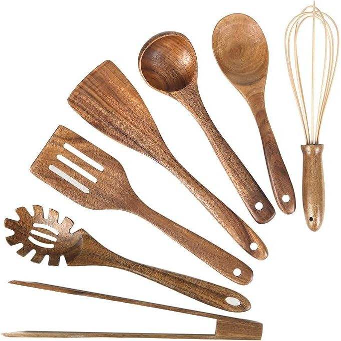 Ensemble d'ustensiles en bois de teck pour la cuisine, spatules et cuillères antiadhésives, outils de cuisine en bois pour la préparation de salades