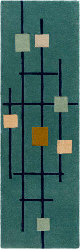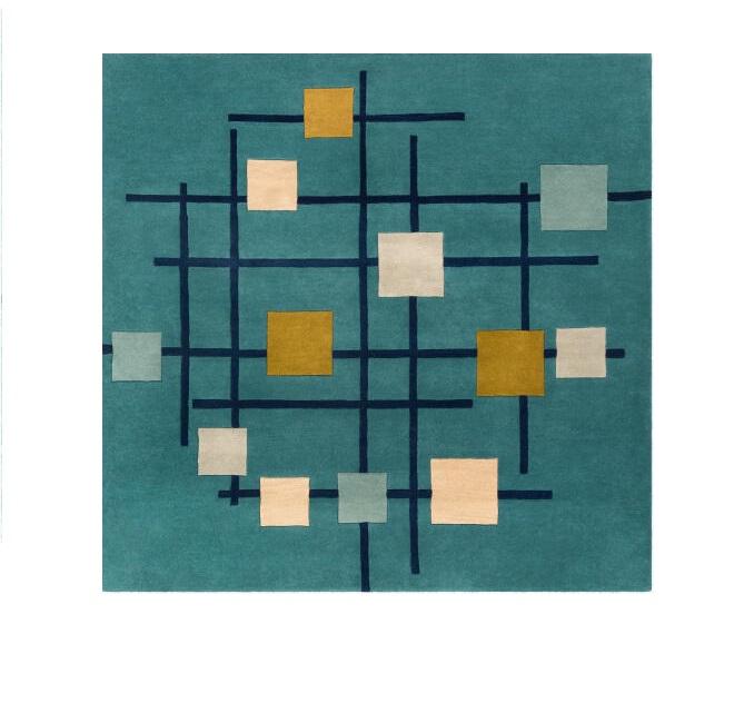 Tapis géométrique en laine bleu sarcelle avec des carrés abstraits, tissé à la main, tapis moderne d'intérieur pour le salon, la chambre à coucher, décoration