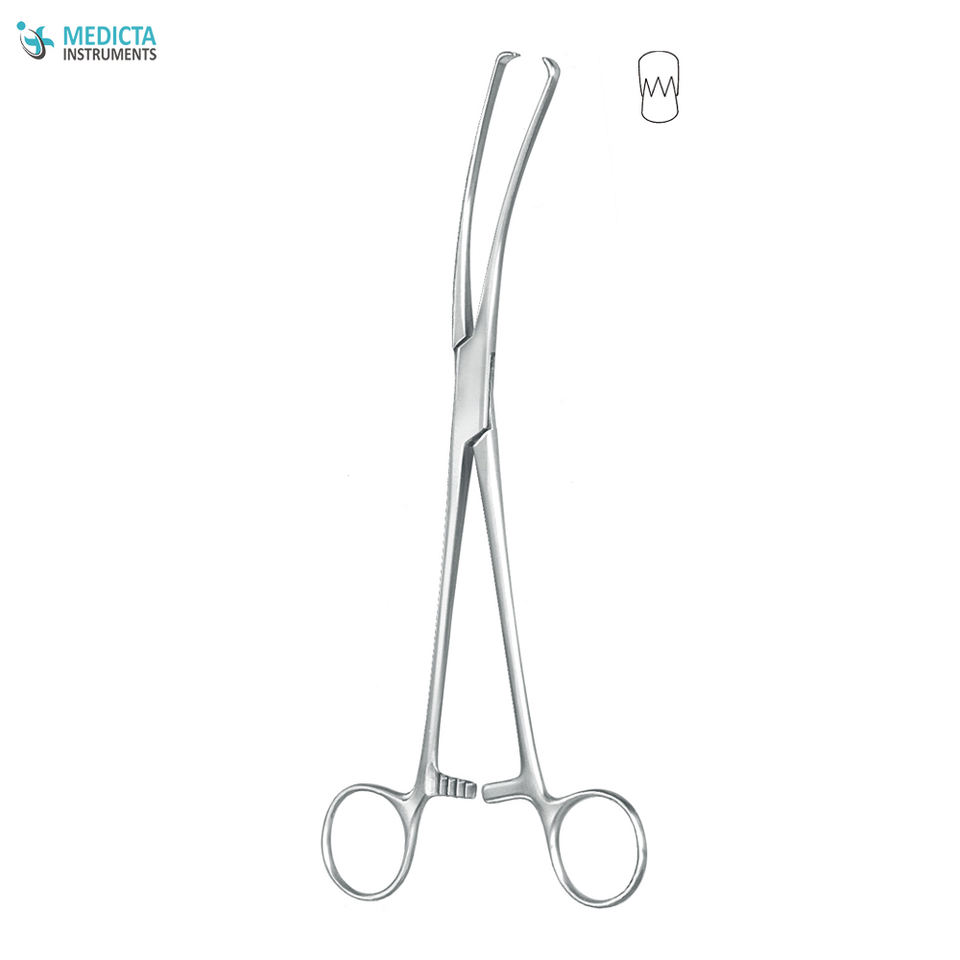 Product name:Teal Vulsellum Forceps Curved 18cm 3 X 4 Teeth Box Joint