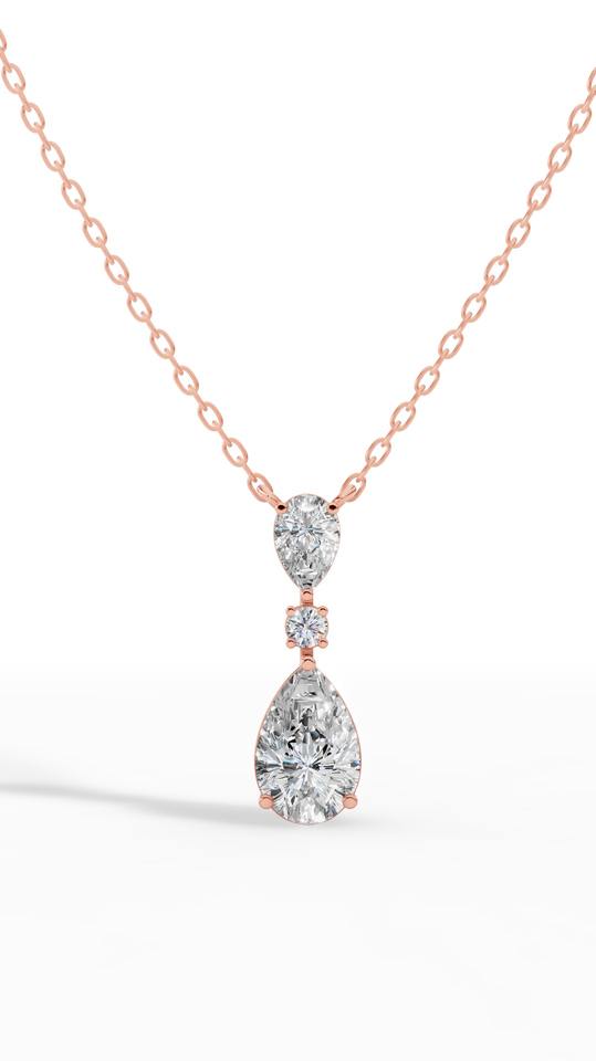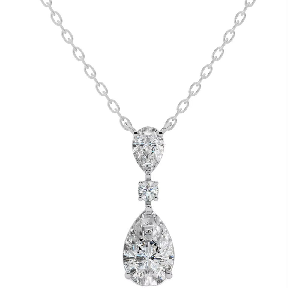 Collier de luxe à trois pierres en forme de goutte d'eau, diamant de laboratoire taille poire, or massif 18 carats, incolore VVS, intemporel pour mariage, anniversaire, fête