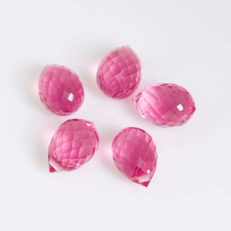 Name:High quality Crystal glass teardrop pink faceted drill beads