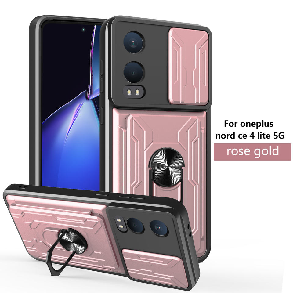 Coque de téléphone OnePlus Nord CE4 Lite 5G antichoc en TPU+PC étanche, esthétique technologique, avec support rotatif à 360 degrés, protection d'objectif et porte-cartes