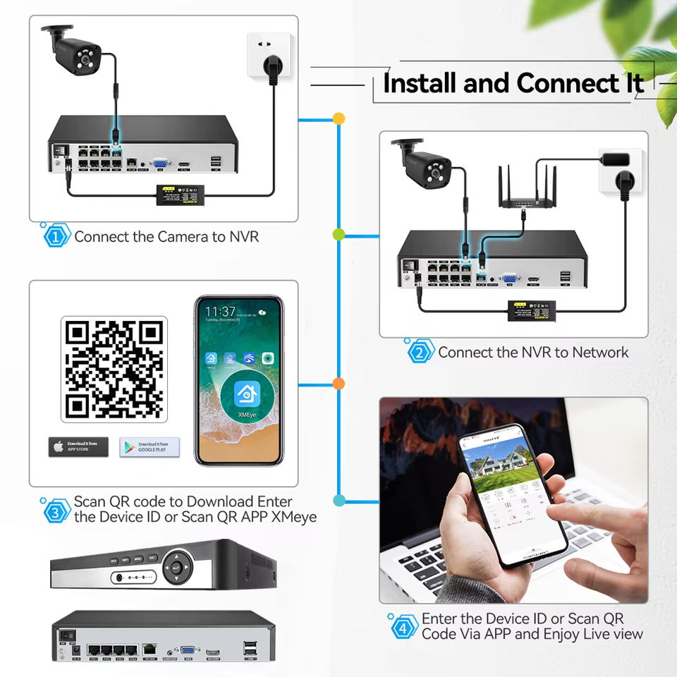 Techage XM-6108K Enregistreur vidéo réseau (NVR) 8 canaux 4K PoE 8MP 5MP 4MP H.265 avec audio bidirectionnel et suivi facial pour système de surveillance