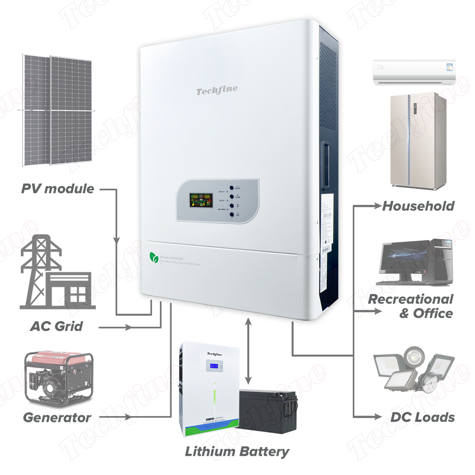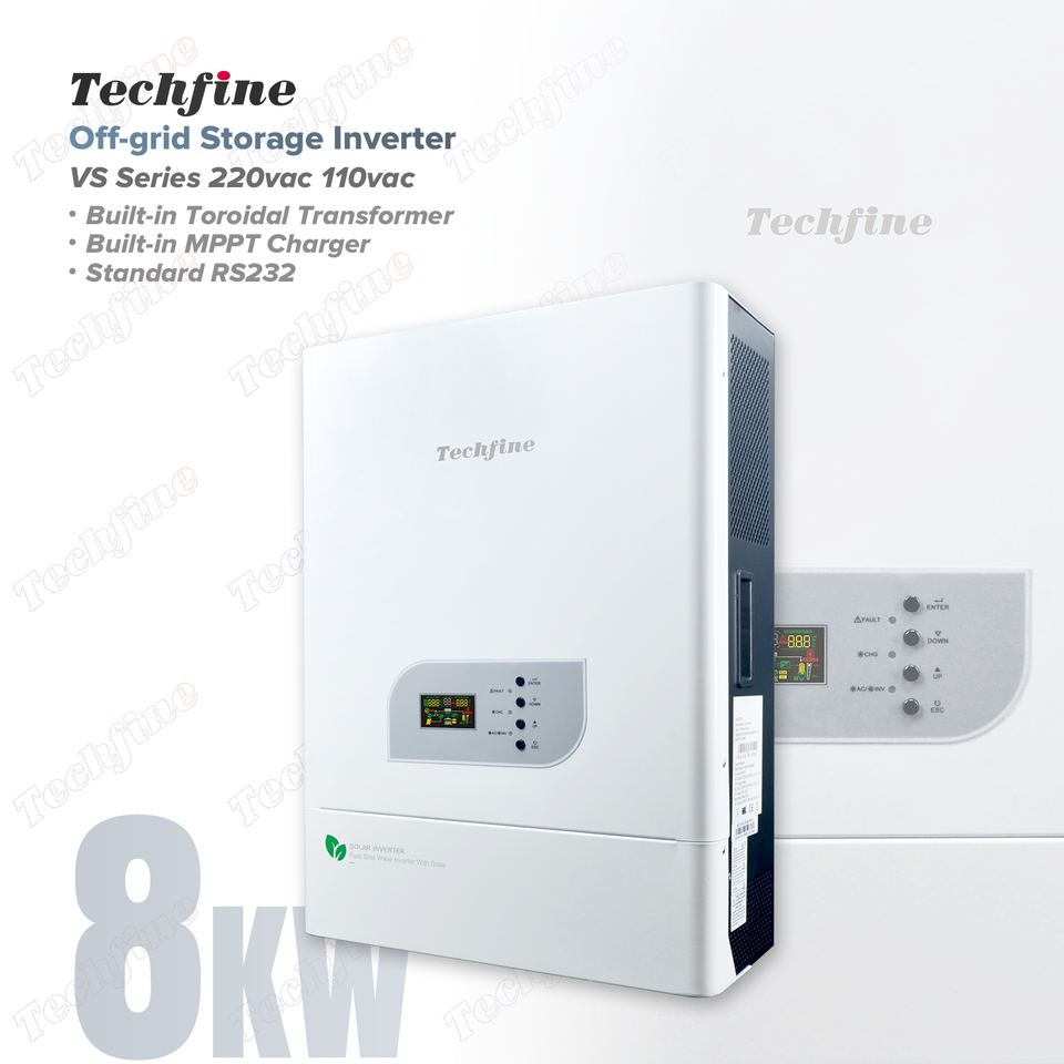 Techfine prix usine 10KVA 8 kw 48 V onde sinusoïdale pure basse fréquence 8 KW 48 volts hors réseau mppt onduleur solaire avec chargeur