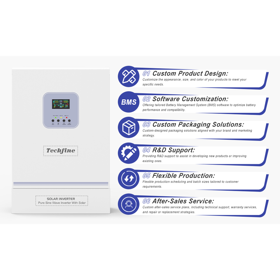Onduleur Solaire Hybride Techfine Prix Usine 5kW 5,5 kVA 5 kVA Onduleur Pur Sinus 5 kW 5,5 kW 5000 Watts On/Off-Grid