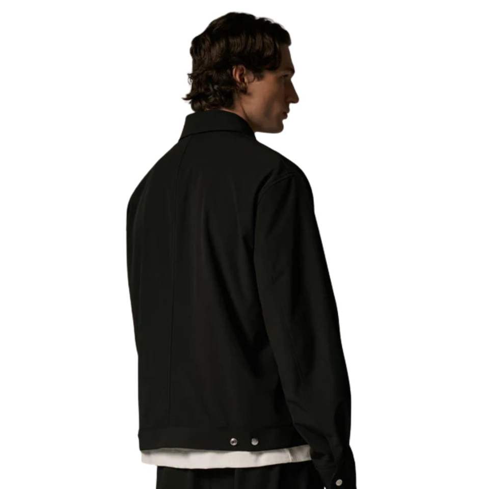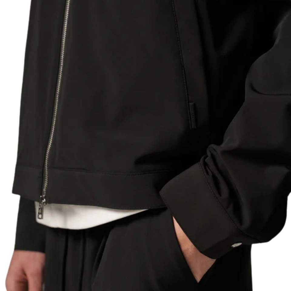 Veste technique zippée pour homme en noir avec un design moderne, tissu de haute qualité, détail de fermeture éclair élégant et coupe confortable