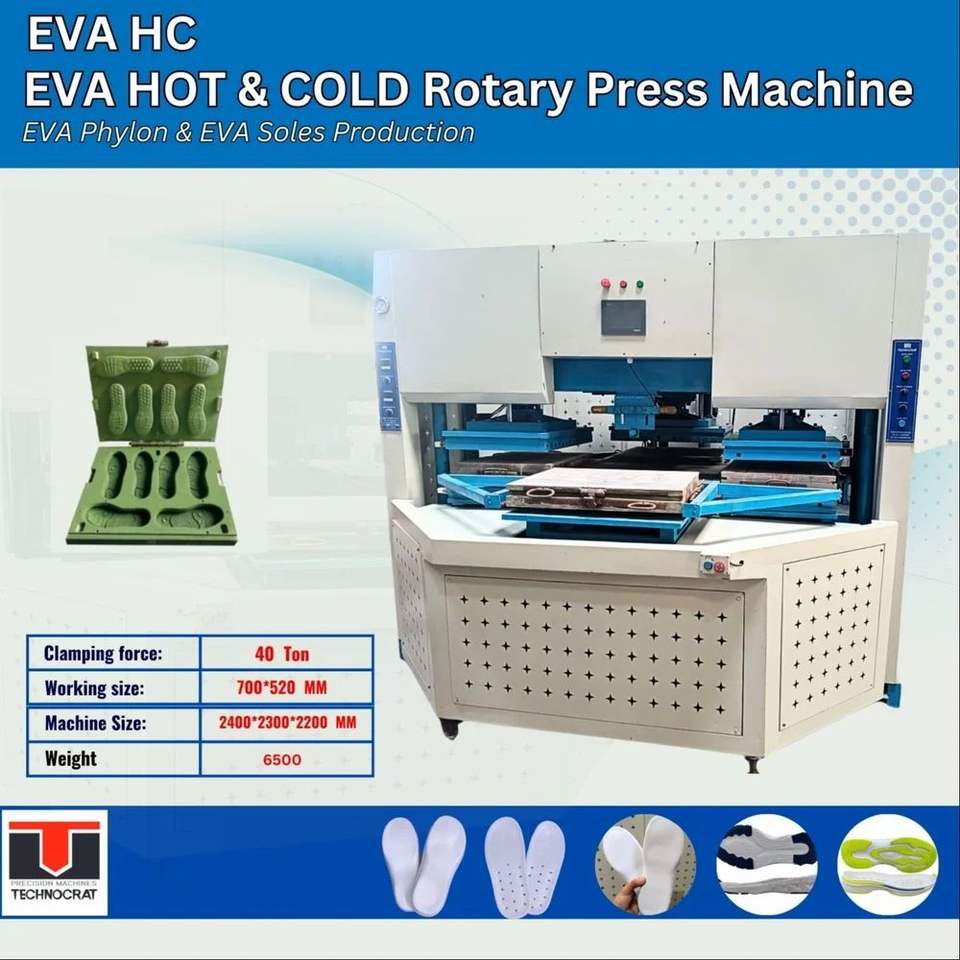 Presse rotative automatique Technocrat efficace avec une puissance de 100 W et une capacité de production de 60 à 220 paires pour semelles EVA chaudes et froides
