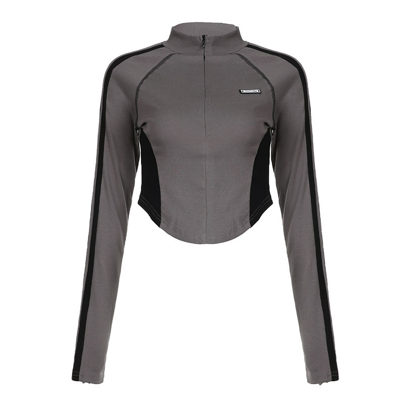 Vêtement technique à coutures contrastées, blocs de couleur, panneaux, fermeture éclair, col montant, ourlet en U, coupe ajustée, amincissant, sous-vêtement de base, manches courtes, style gothique, rapide
