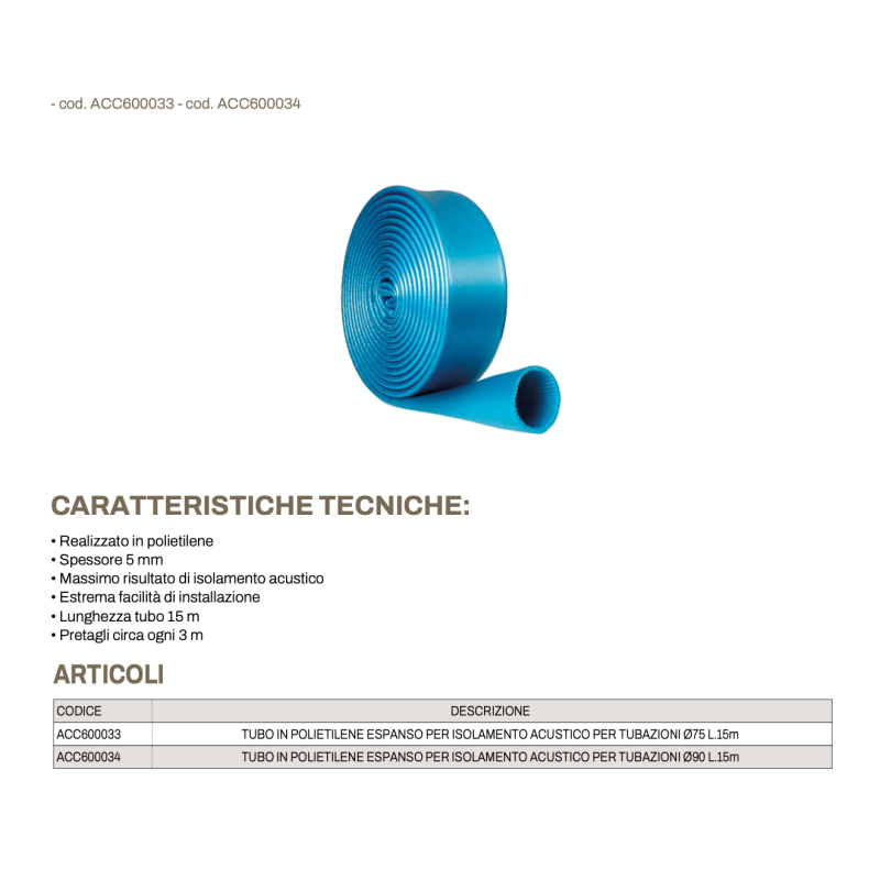 Tube en polyéthylène expansé Tecnosystemi de 15 m pour isolation acoustique des tuyaux de 75 et 90 mm, matériau insonorisant