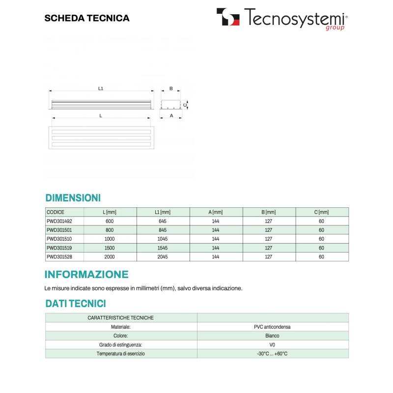 Diffuseur linéaire en PVC anti-condensation à 3 fentes Tecnosystemi pour systèmes CVC, pièce de retour d'air