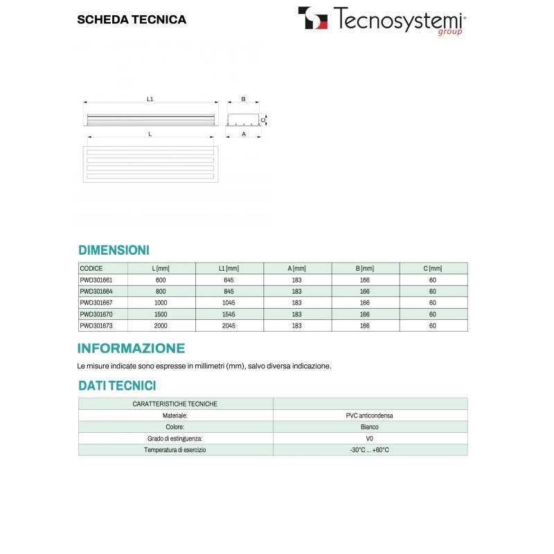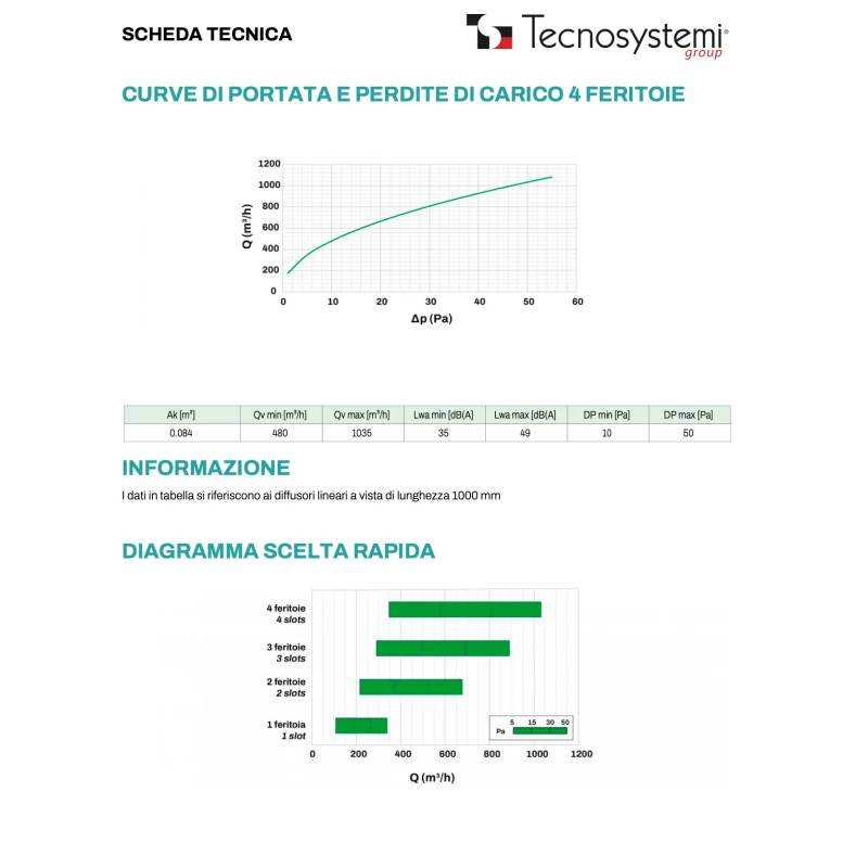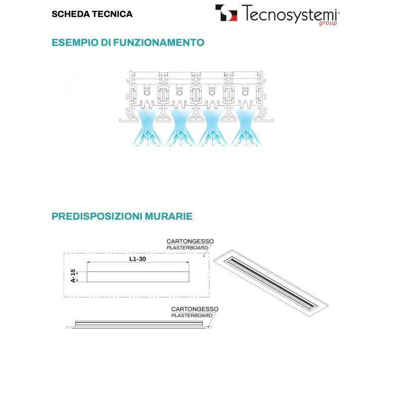 Diffuseur linéaire en PVC anti-condensation Tecnosystemi à 4 fentes et grille pour air de retour