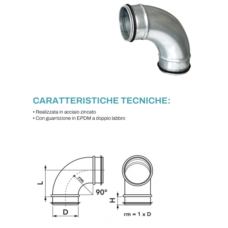 Pièces de systèmes HVAC Tecnosystemi 90 Smooth Bend pour conduits circulaires
