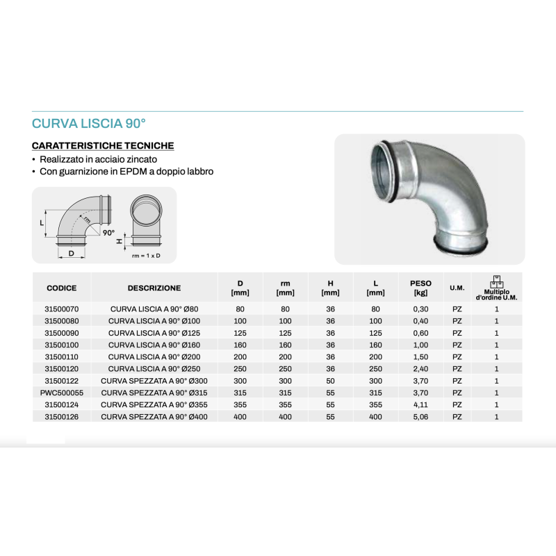 Numéro de Type:tecnosystemi-curva-liscia-90