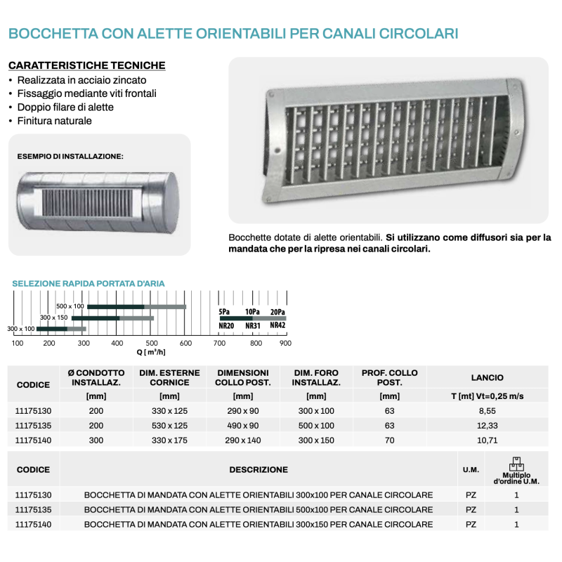 Buse à ailettes réglables Tecnosystemi pour conduits circulaires, pièces de systèmes CVC