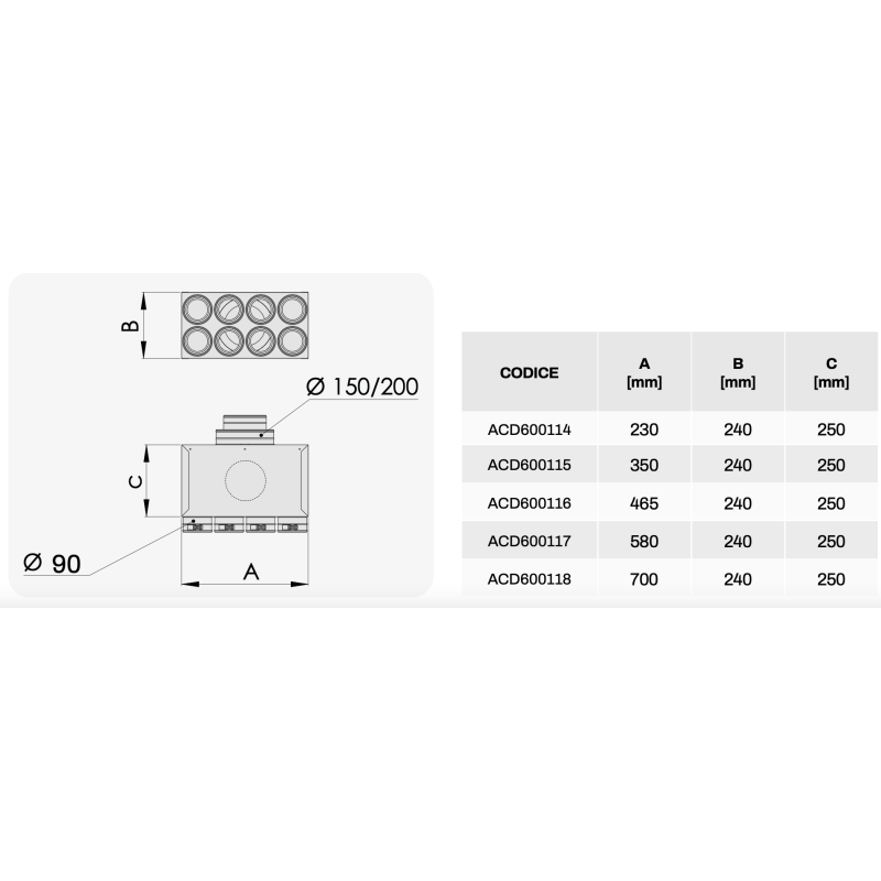 Tecnosystemi Plénum de distribution industriel complet à 90 sorties pour systèmes CVC VMC à conduits avec registre d'équilibrage 900 CFM