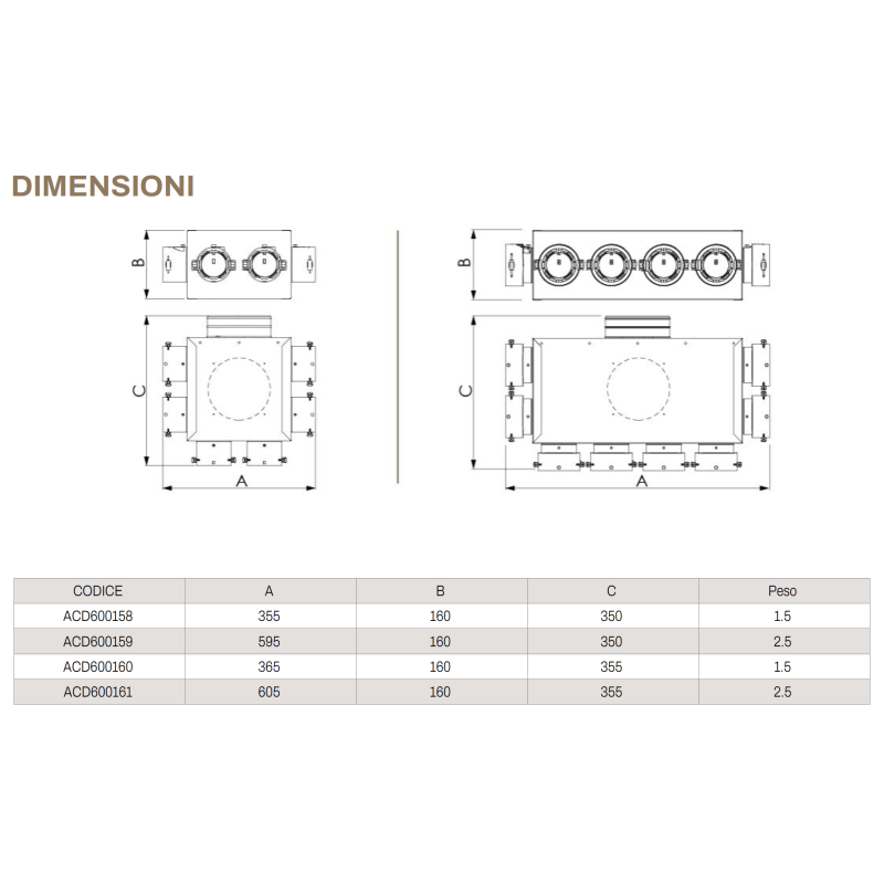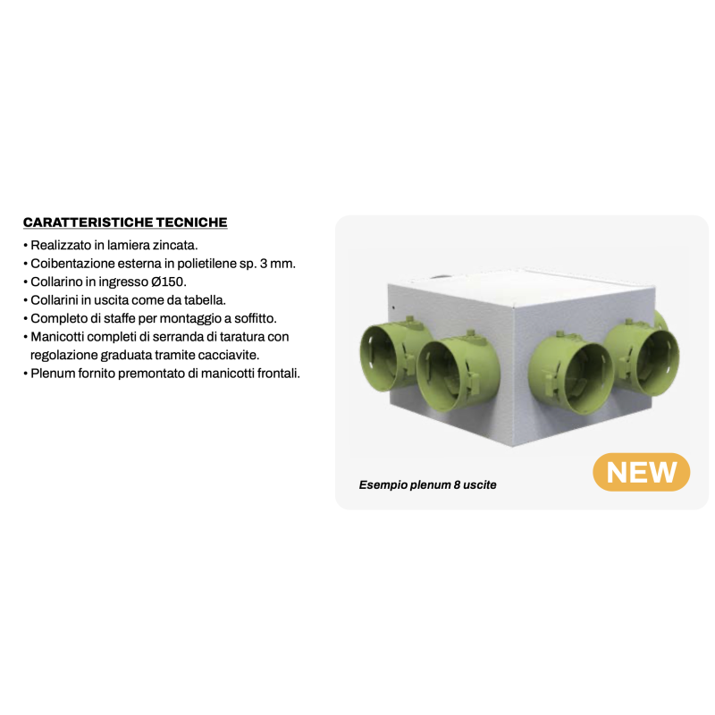 Tecnosystemi Plénum de distribution complet pour systèmes VMC à conduits, prises de diamètre 75 et 90 avec registre d'équilibrage, Pièces CVC