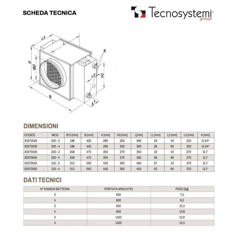 Systèmes CVC industriels Tecnosystemi : Batterie d'eau chaude pour unité de récupération de chaleur efficace