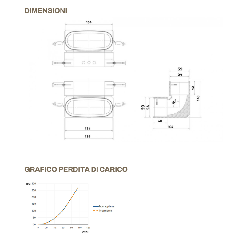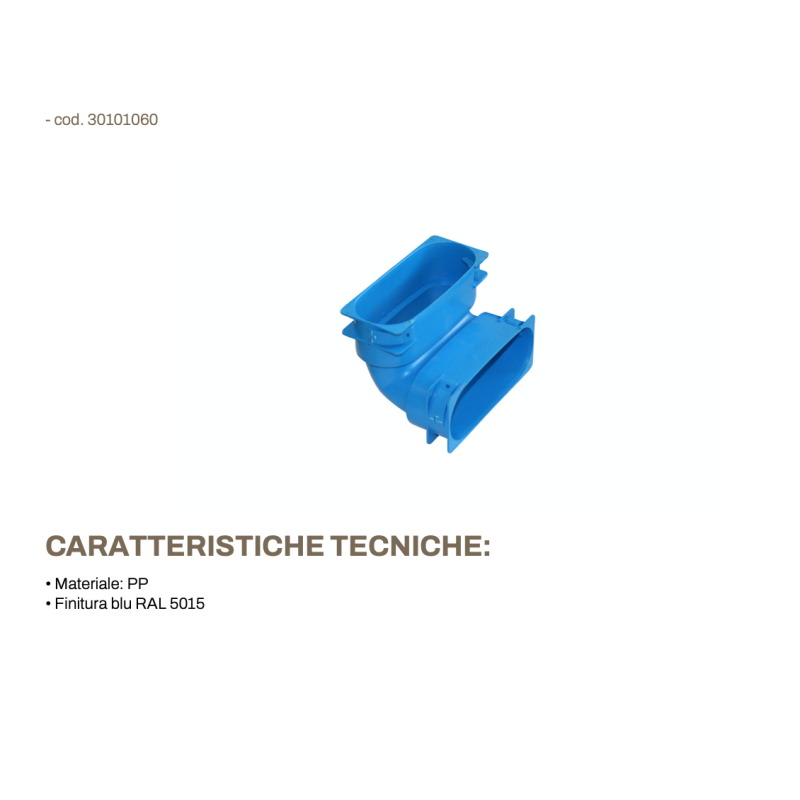 Pièces de systèmes HVAC Tecnosystemi, coude ovale vertical avec connexion pour tuyaux ondulés, modèle 30101060