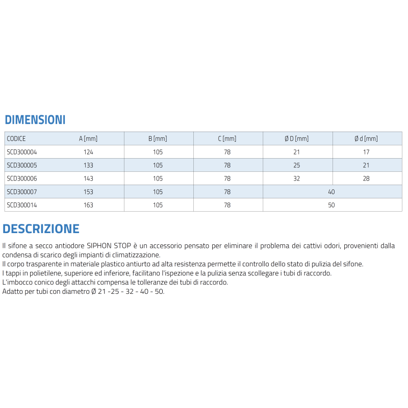 Siphon horizontal inspectable Tecnosystemi pour la climatisation et la plomberie – Produit anti-odeurs