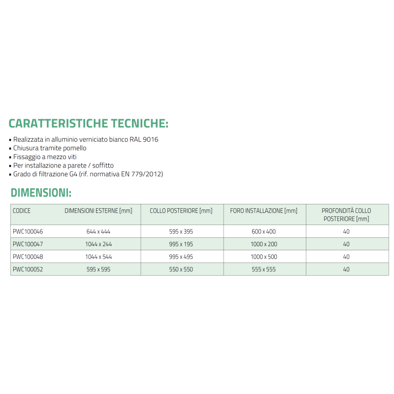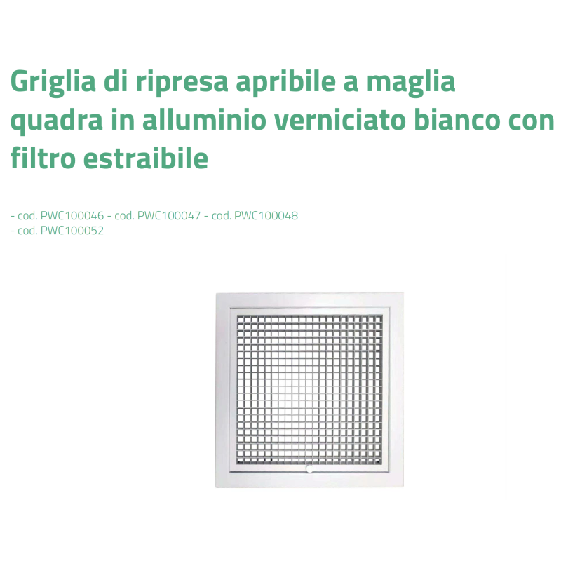 Grille de retour carrée ouvrable Tecnosystemi en aluminium peint blanc avec filtre amovible pour faux plafonds et registres