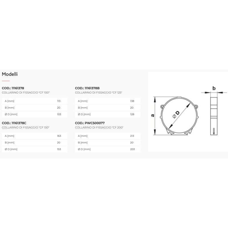 Tecnosystemi PVC Fixing Collar for HVAC Systems Parts Suction and Ventilation in PVC Plastic