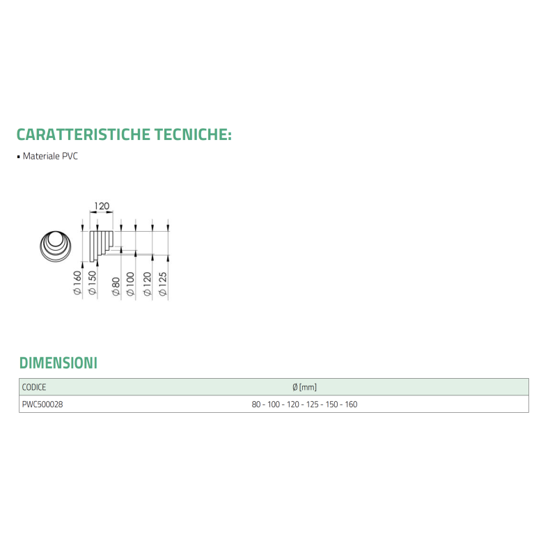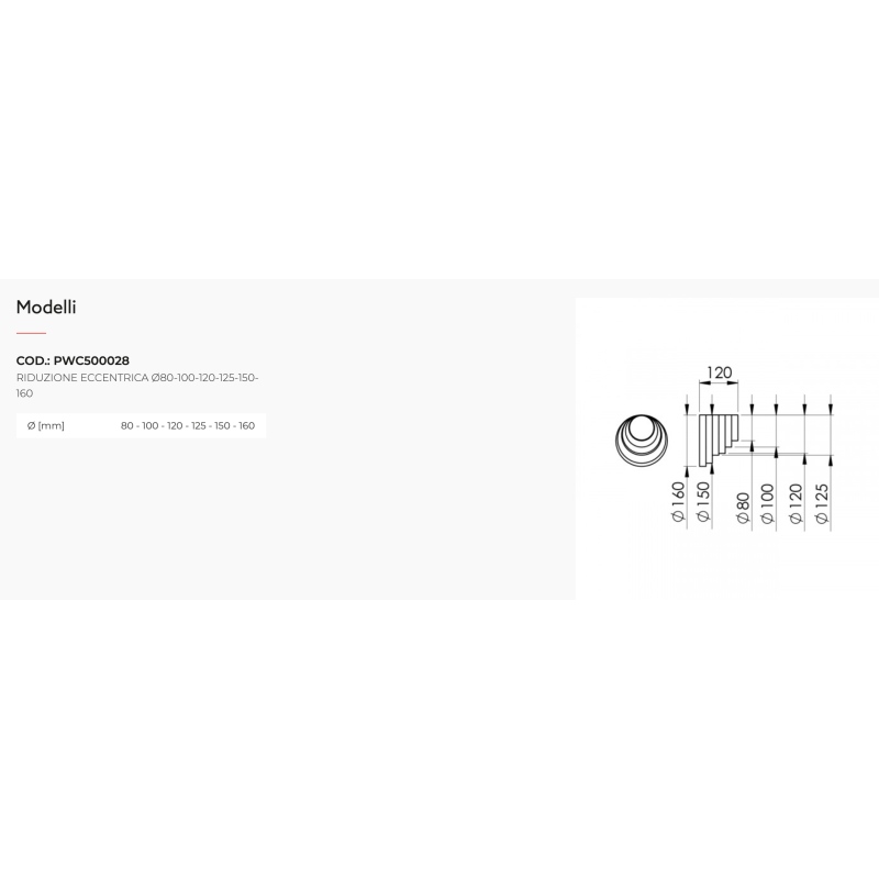 Raccords excentriques de réduction Tecnosystemi en PVC pour systèmes CVC, tailles 80, 100, 120, 125, 150, 160 pour aspiration et ventilation