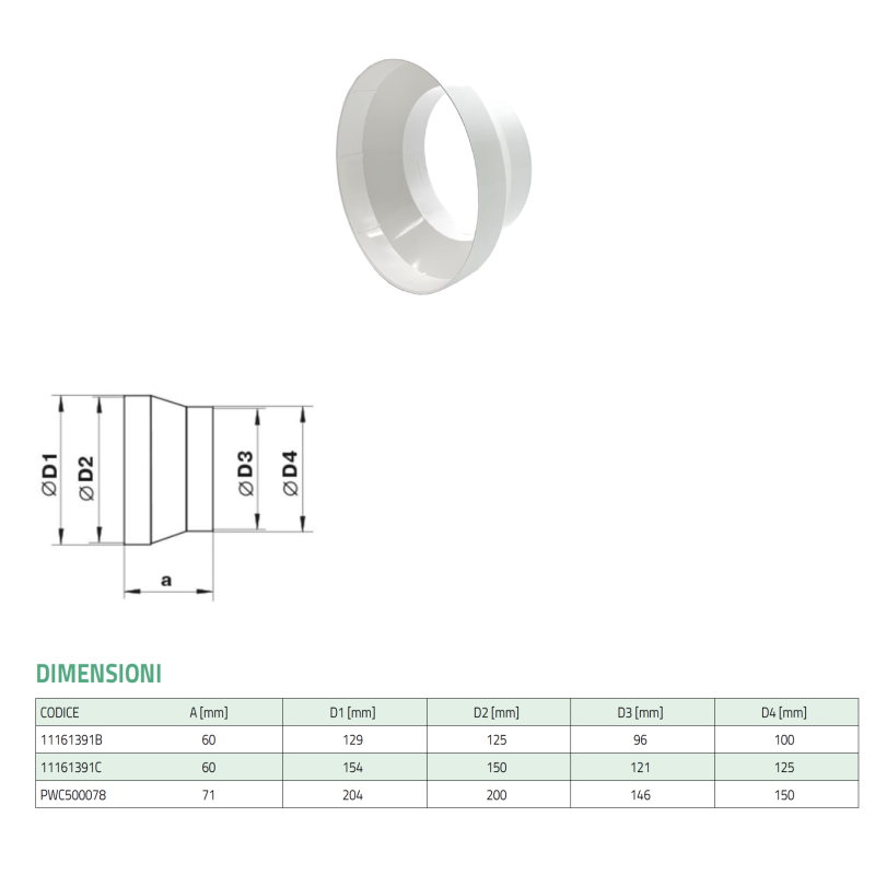 Raccord de réduction en PVC Tecnosystemi pour systèmes CVC – Pièces pour aspiration et ventilation en plastique PVC