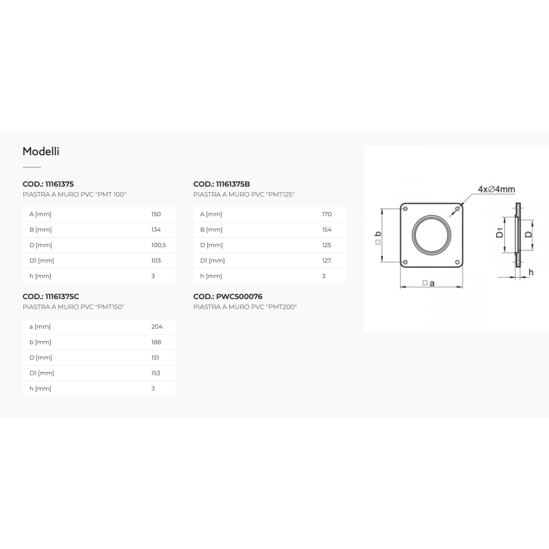 Plaques murales et grilles en PVC Tecnosystemi avec orifice d'aspiration et de ventilation en plastique PVC