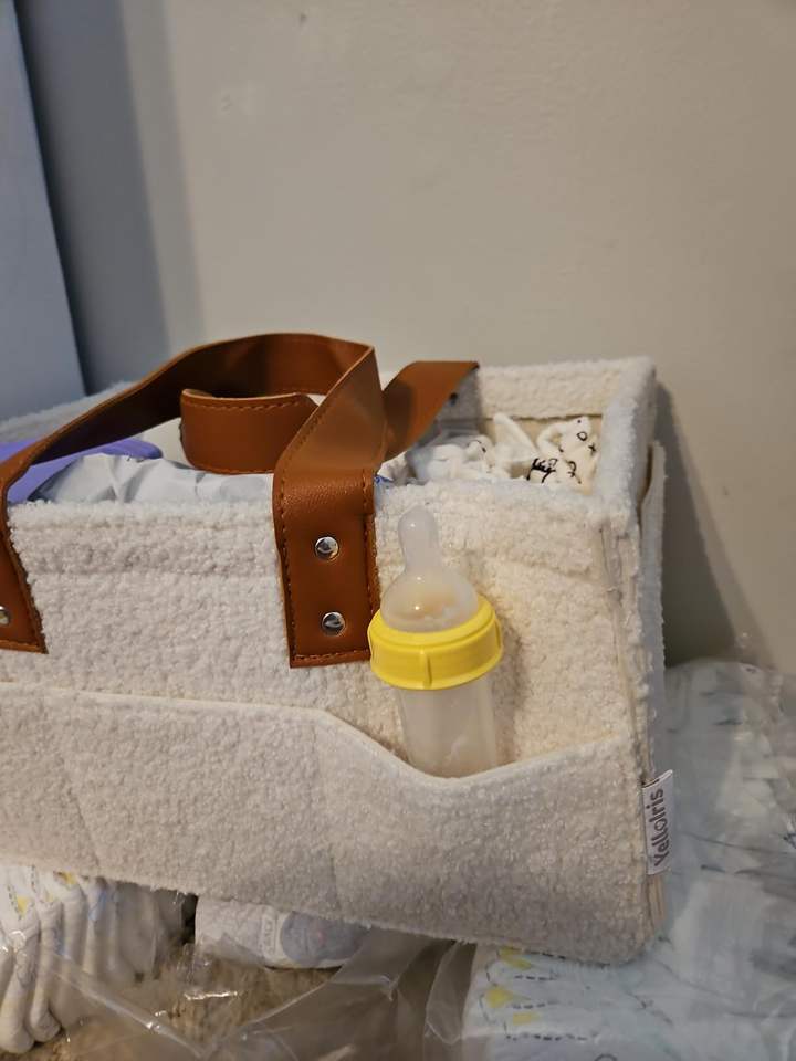 Sac à langer en polaire Teddy, panier décoratif avec poignée et poche, panier de rangement pliable