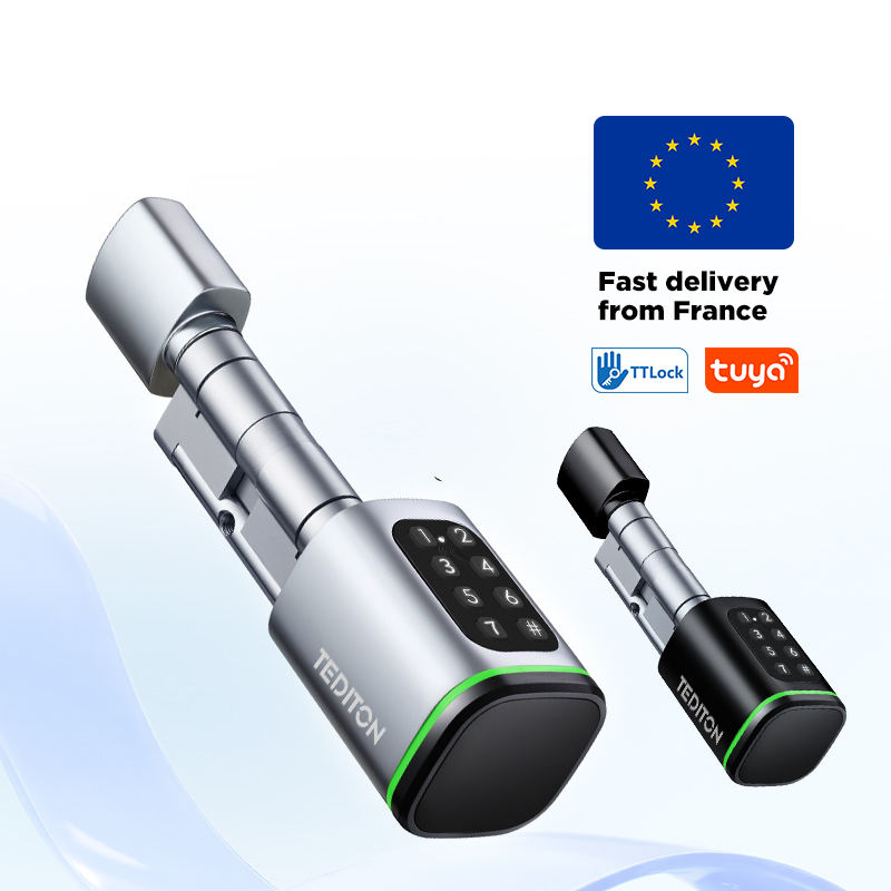 Cylindre de serrure intelligent à mot de passe Tediton, norme européenne, déverrouillage par application, serrure numérique, sécurité domestique, poignée de serrure tubulaire