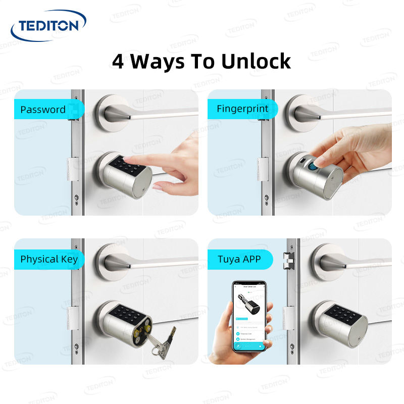 Tediton OEM Serrure de Porte Intelligente Numérique Réglable Sans Clé Wi-Fi Européenne Tuya App Empreinte Digitale Ttlock Cylindre de Serrure Intelligent