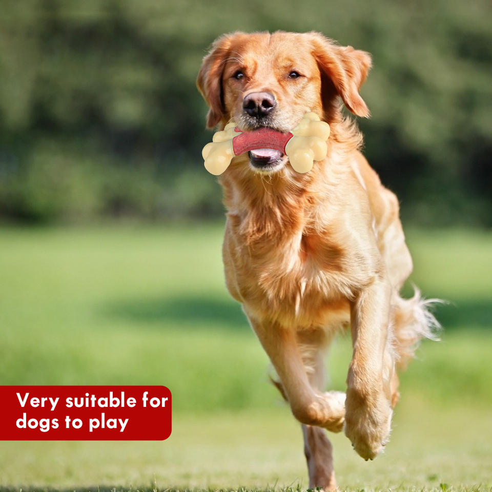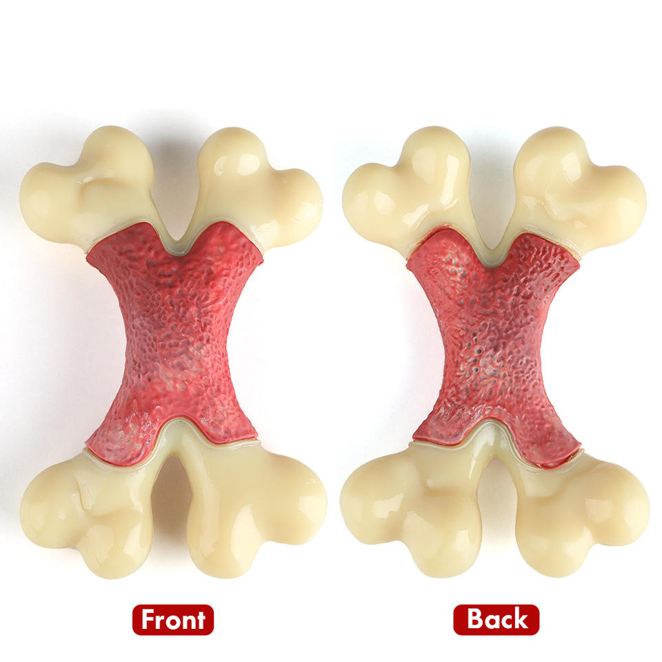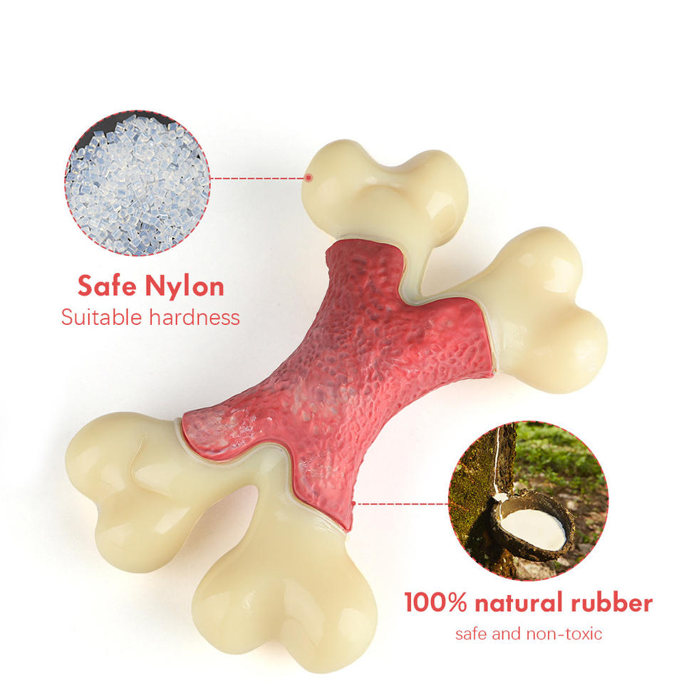 Jouet à mâcher pour chien en nylon rouge durable, double os aromatisé au bacon, 17,8x12,7x4,7cm, jouets pour animaux de compagnie