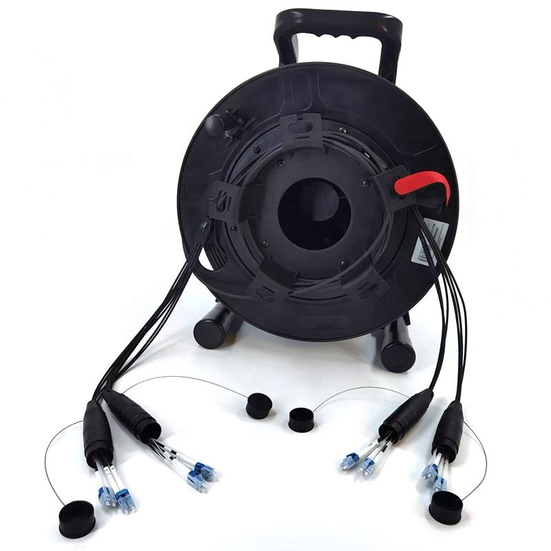 Enrouleur de câble à fibre optique pour environnement difficile d'extension mobile de télécom avec cordon de raccordement à fibre optique tactique blindé pour étui de vol