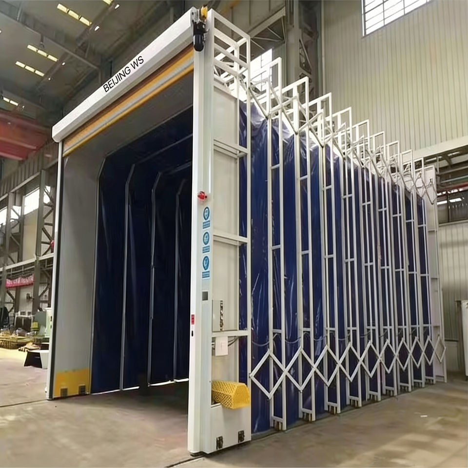 Cabine de peinture télescopique pour préparation et suivi de la peinture, puissance 14 kW, tension 380 V, avec pré-filtre et pulvérisation au plafond