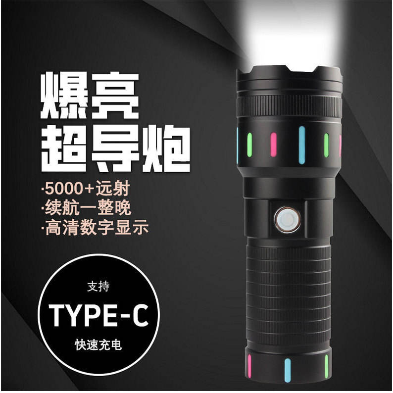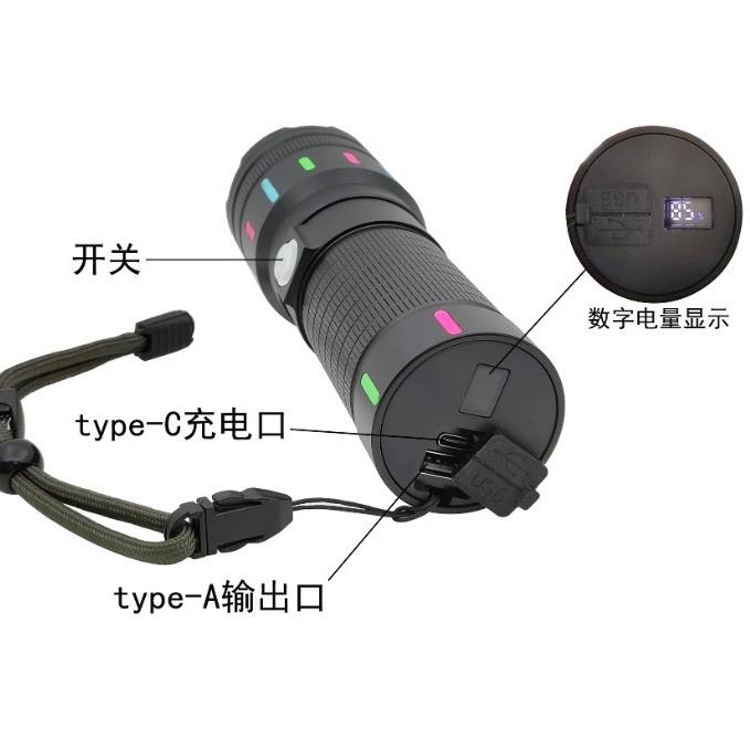 Telescopic Zoom Flashlight Led Rechargeable Battery 3600Mah Type C Charging With Digital Display For Outdoor Use