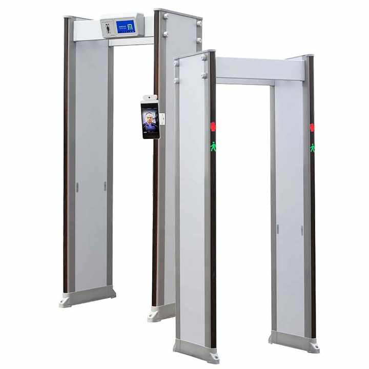 Détecteur de métaux à passage avec surveillance de la température, caméra thermique, portique pour le dépistage de la fièvre sur plusieurs visages