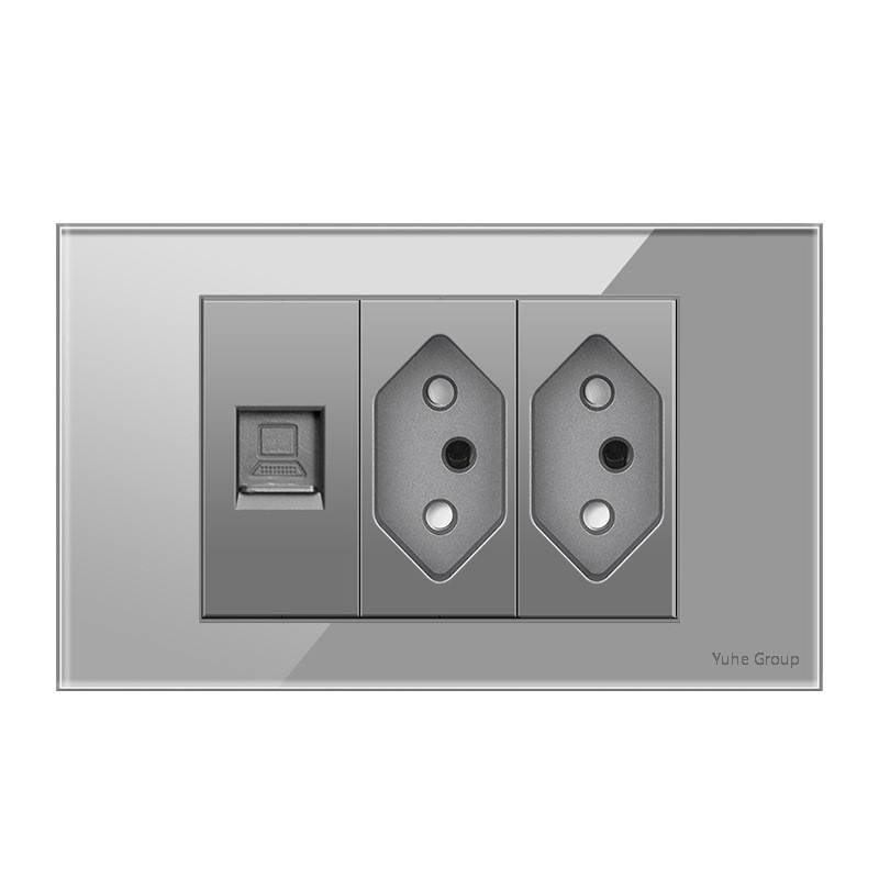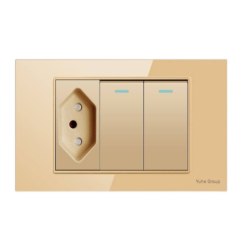 Panneau en verre trempé, panneau tactile standard brésilien, prise murale double USB type C 10A/20A avec interrupteur lumineux