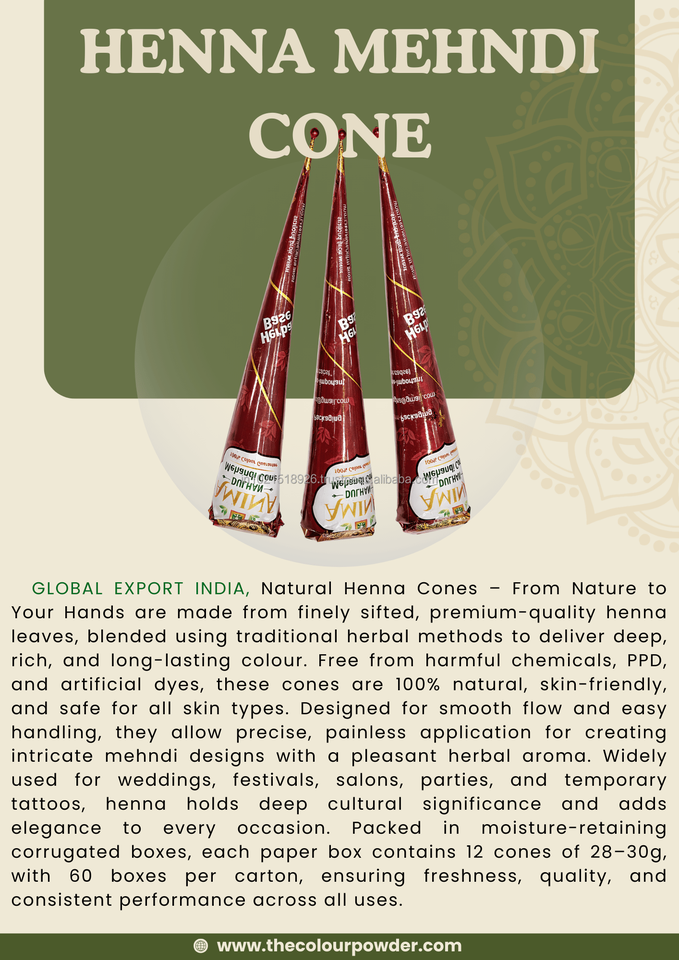 Emballage:12 cônes de henné et 10 tubes de henné par paquet, 60 pièces/CTN