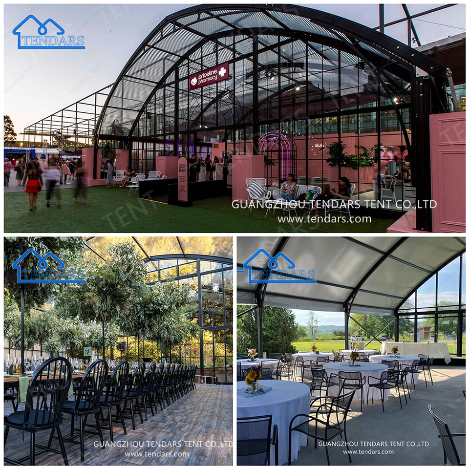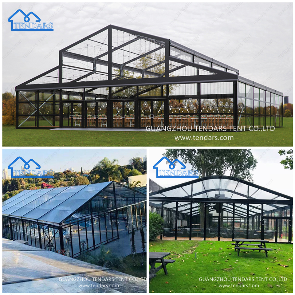 Tente de Mariage Transparente à Louer, Structure en Aluminium Noir, Grande Tente pour Festivals, Banquets et Événements (300 à 500 Personnes)