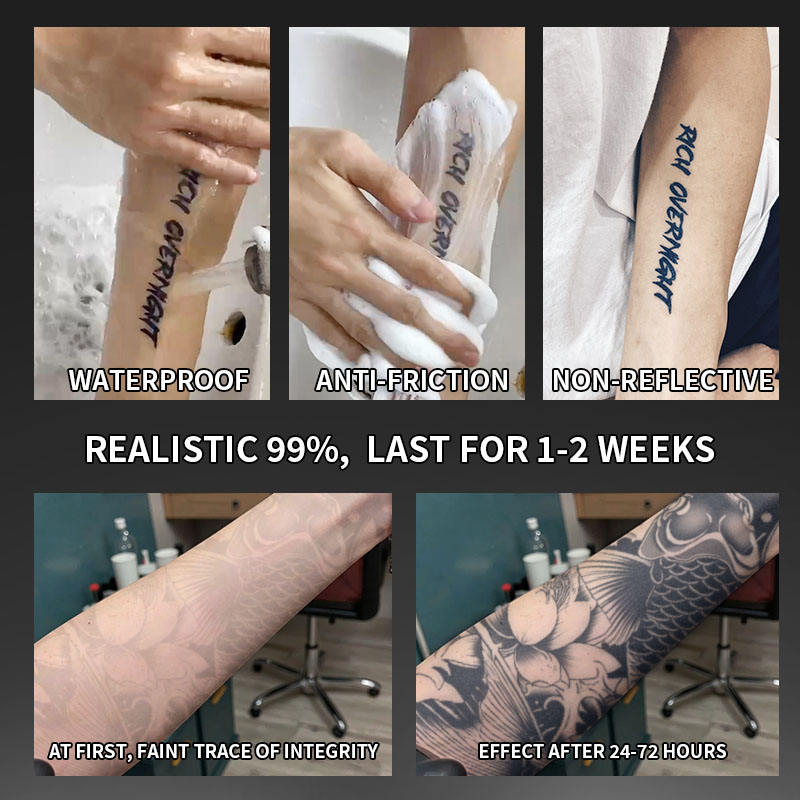 Tatouage temporaire tatouage semi-permanent étanche à la transpiration dure 2 semaines tatouage anti-friction à base de plantes réaliste pour jambe de bras